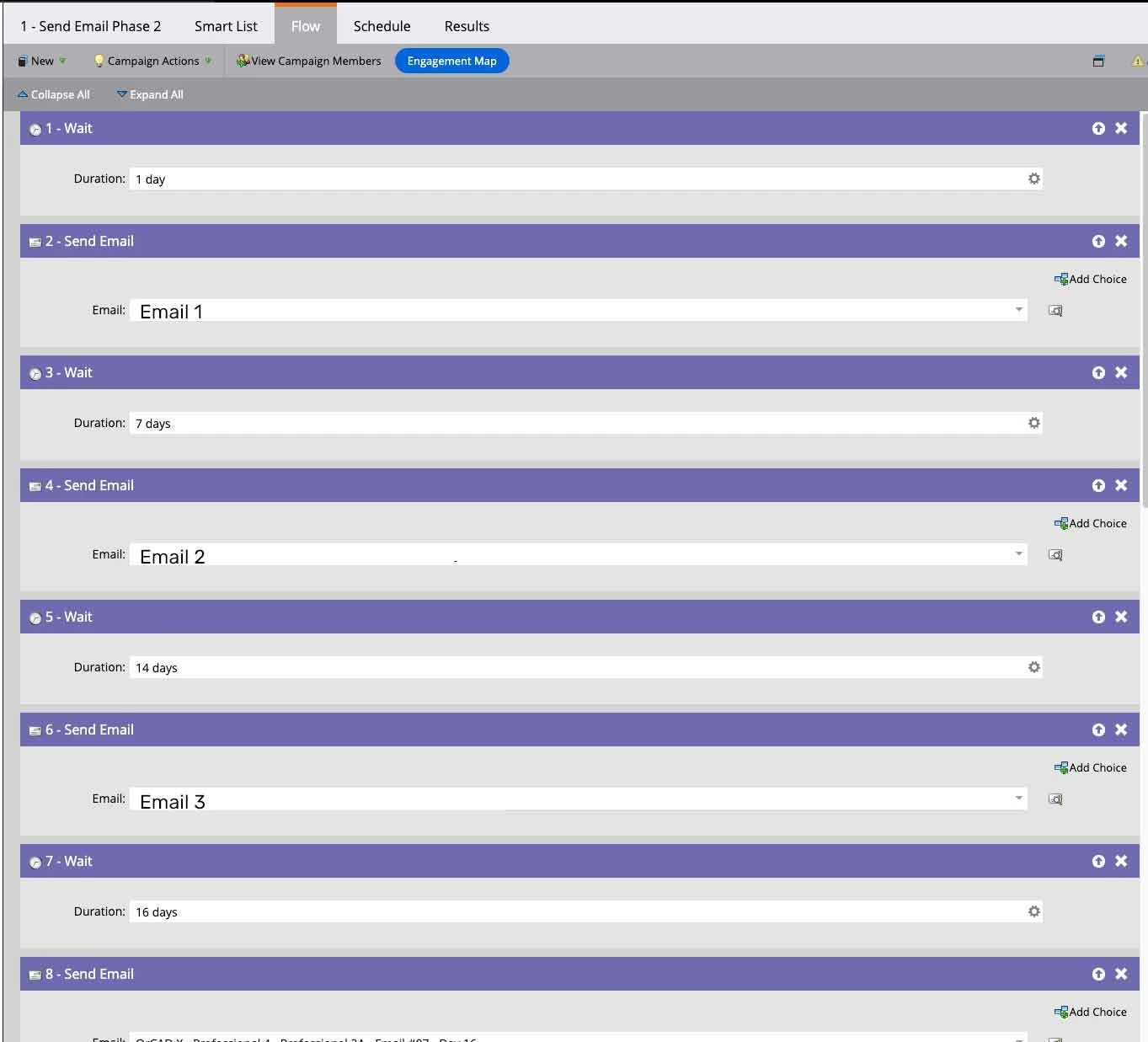 I have the below flow. I'd like to know if flow step 5 is 14 days after flow step 4 or if it is 14 days after the flow starts.