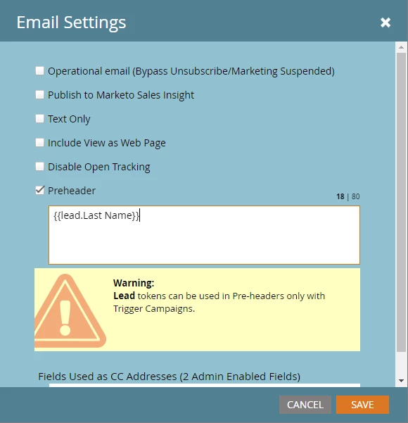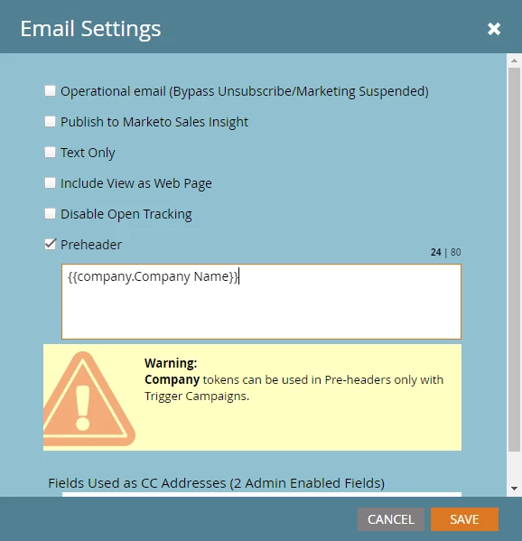 Warn us when token strings (e.g. {{ or }}) exist in Preheader.