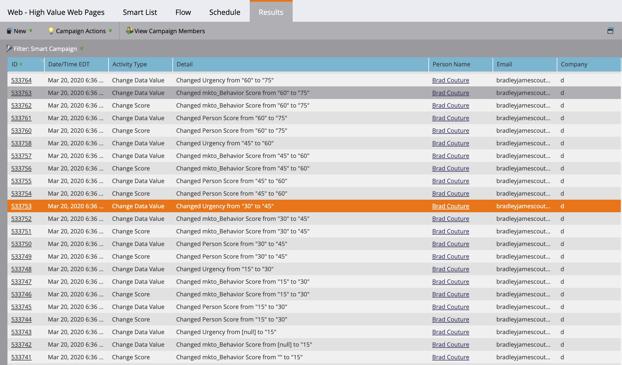 I just finished building a lead scoring program and had a problem upon my first test. Specifically a smart campaign scoring leads on viewing 5 webpages that are high value. I tested the scoring model by filling out a form on a web page that is NOT listed in the smart campaign as high value, however, the smart campaign fired multiple times back to back. I've set the Qualification rules for once every hour so I am puzzled as to why this fired multiple times. Any thoughts?