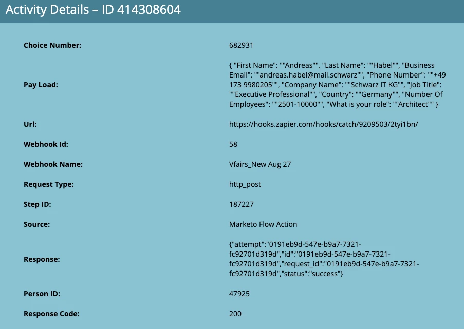 The webhook we have been trying to send seems to have gone through successfully from Marketo's end but our Vendor (VFairs) doesn't seem to receive the webhook. Everything seems to be firing correctly in Marketo with a success message. Is this something that is on the Vendor (Vfairs) side? Vfairs say that some thing is not set up correctly in marketo. Is this issue on Marketo's side or Vfairs? Is there a way to check in Marketo if everything is firing correctly?