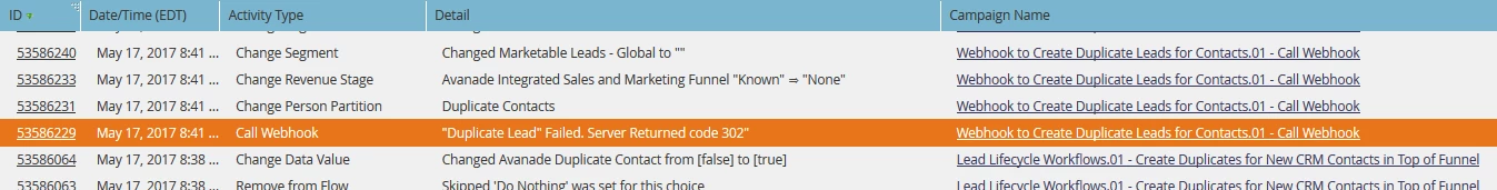 We're finding that this is working very inconsistently for us. Sometimes it works, sometimes it doesn't. What's odd is that we always receive a common error type "Duplicate Lead" Failed. Server Returned code 302" - even when the webhook runs successfully. When I asked Support about this, they came back with the following: