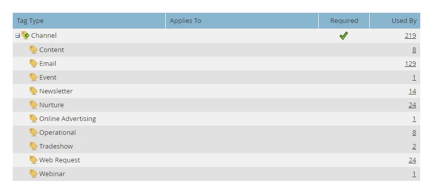 To directly answer your question, yes, if you look in Admin » Tags in an untouched Marketo instance there are a few default Channels. Did you look there?