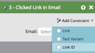 What is the "Link id" constraint in the smart list filter "Clicked link in email"?