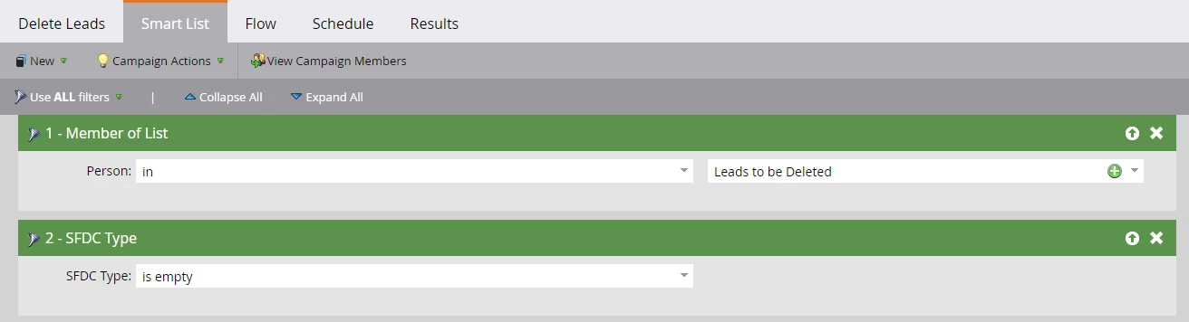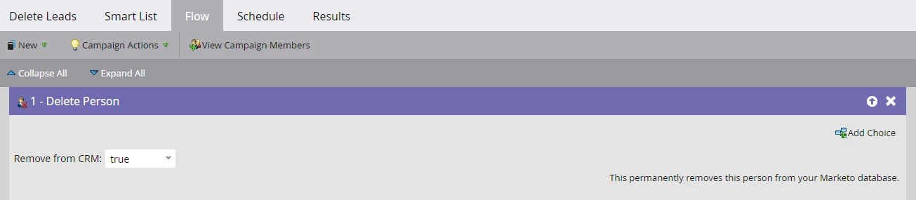 You can also set a recurring schedule for this campaign, so it runs every week on its own (do this if you're sure that the people in the list are exactly the ones you'd want to remove permanently from the Marketo DB). Alternatively, you may also manually run this campaign on a weekly basis if you'd like to re-check the people qualifying for the campaign.