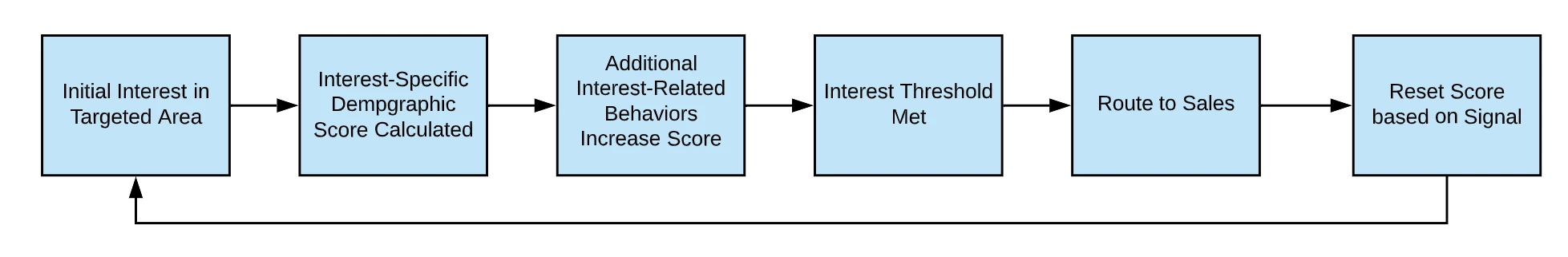 Interest level scoring lets people flow through a scoring program dedicated to that particular interest so that only demographic criteria and specific activities associated with that interest contribute to the score.