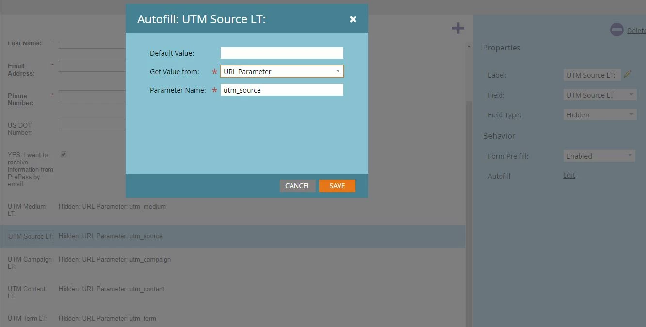 My initial question of where to place utm’s, comes from the idea that if the utm’s are not part of the form embed code on the website, the fields would not populate, example