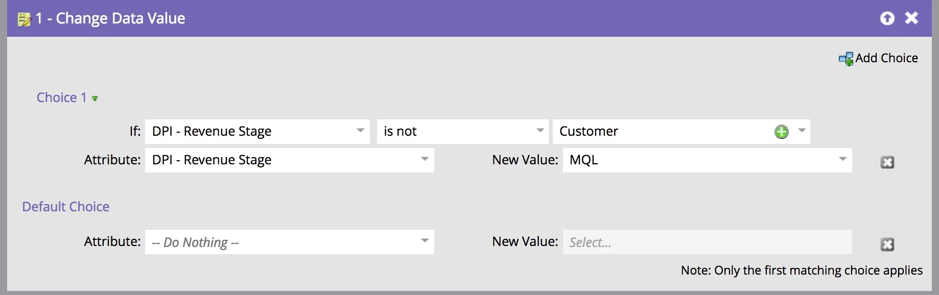 Either way, if you don't want the data value to change to MQL after field named "Changed Lead Lifecycle - TR" has a value "Customer," you can use a Choice in the Change Data Value Flow step that prevents it from changing to MQL if the current value is "Customer."