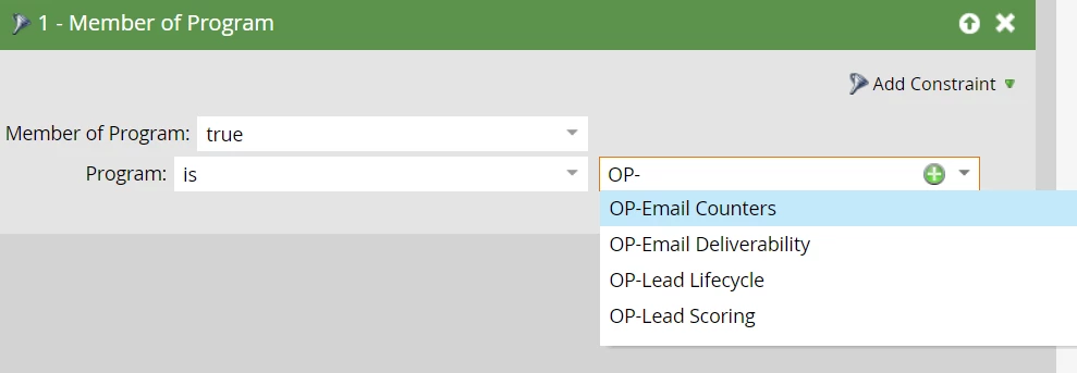 But whenever I insert OP-in the Marketing Activities' search bar it will show any asset that has "op" in it. (Including the OP- programs I want to search)