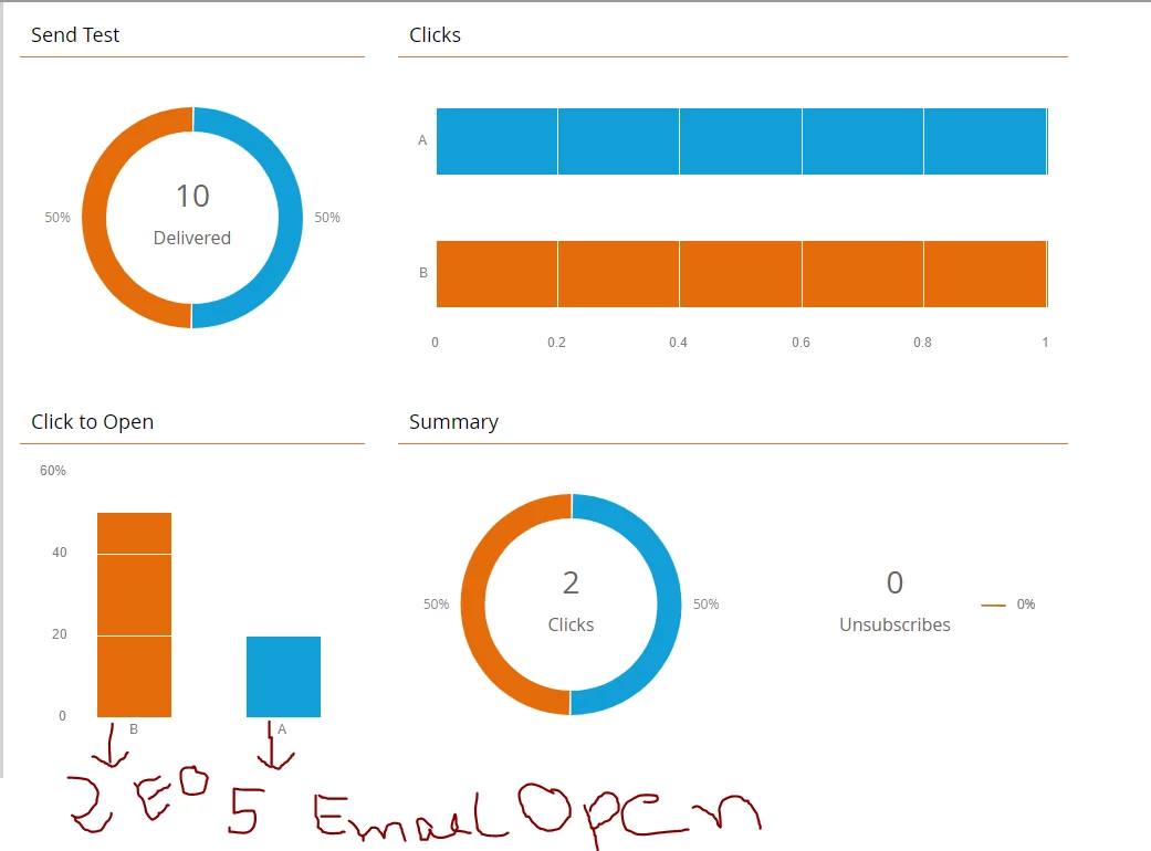 In the report, it is showing equal clicks against both the emails. Below is the dashboard view.