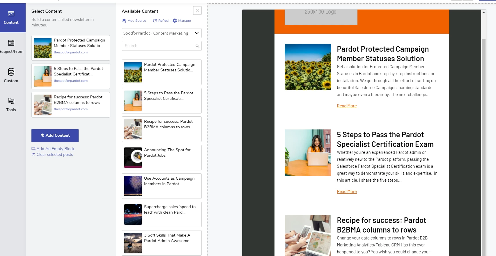 Hello, has anyone used a 3rd party tool which allows your Wordpress content to be accessible within a Marketo email template to create/deploy email newsletters? We are a news provider and what we're looking for is a tool which will allow our editors to access our WordPress content, select it to appear in one of our email newsletters, and select the list that the newsletter goes to, all without going into Marketo. I know there are some options out there, but wondering if anyone has experience with one (and please don't recommend Grazitti).