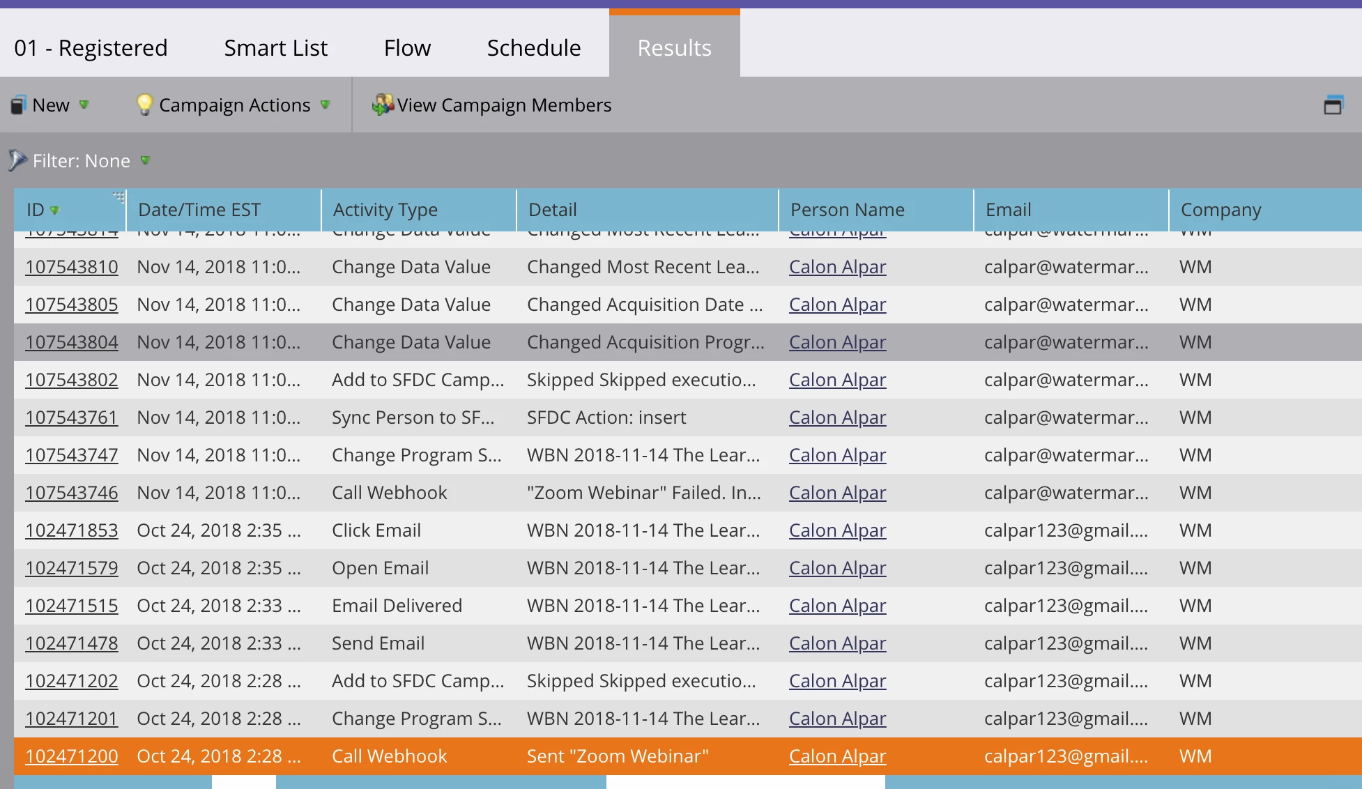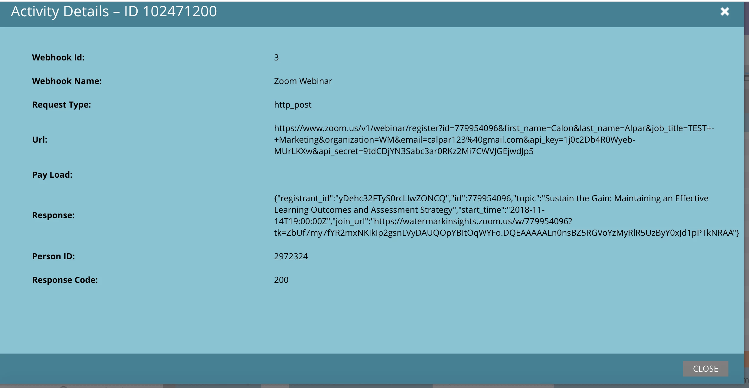 I'm having a major problem that is messing up my operations and I am stumped, even MKTO support hasn't identified an answer and it's been escalated twice. Trying a post here to see if anyone else has any ideas around this. We use Zoom Webinar integration for our webinars and all of a sudden on the registration forms I keep seeing the Invalid Email Address Fail. I have used our normal setup where it has always worked and it's not working. The interesting thing why I don't think the Webhook is broken, is because the registration actually does get processed in ZOOM. The problem is the unique webinar url doesn't get registered in the person's MKTO record.