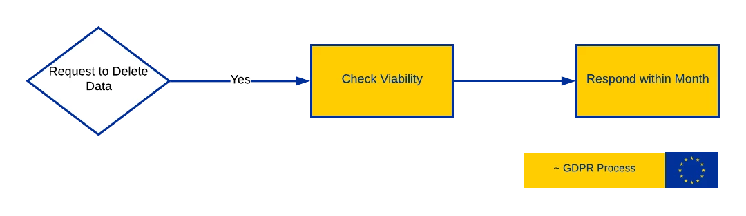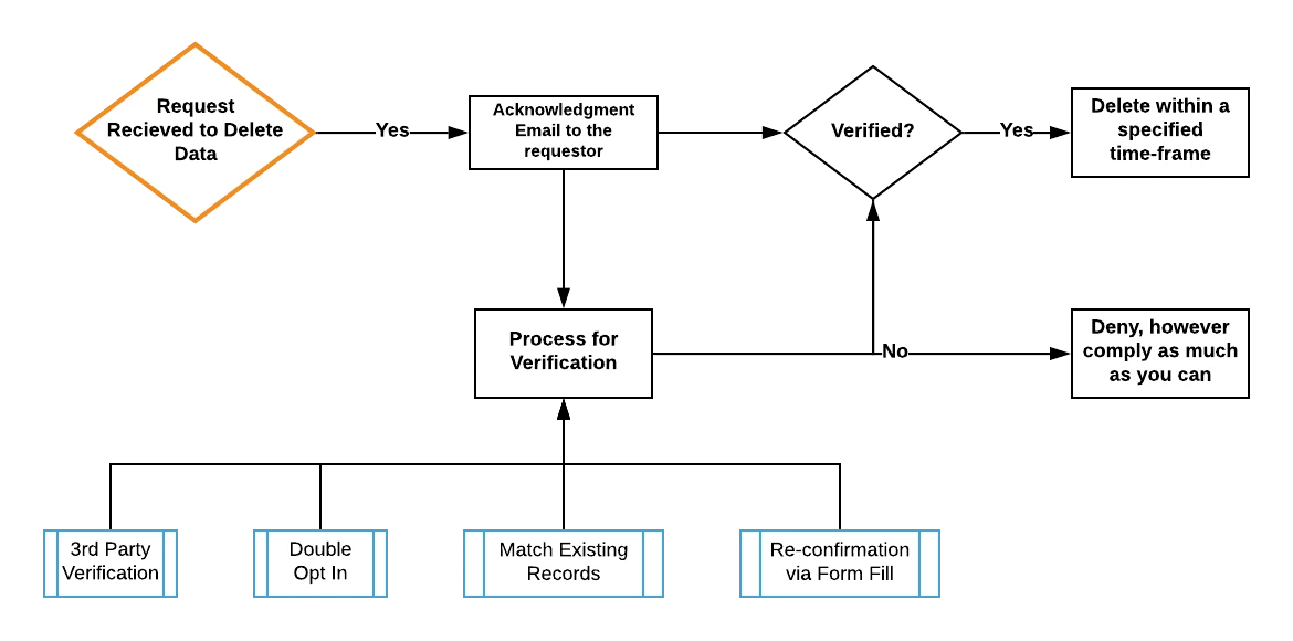 Consumers need to be able to request you to delete their data from your records. GDPR has a similar requirement, with a process to respond to such requests within a Month.