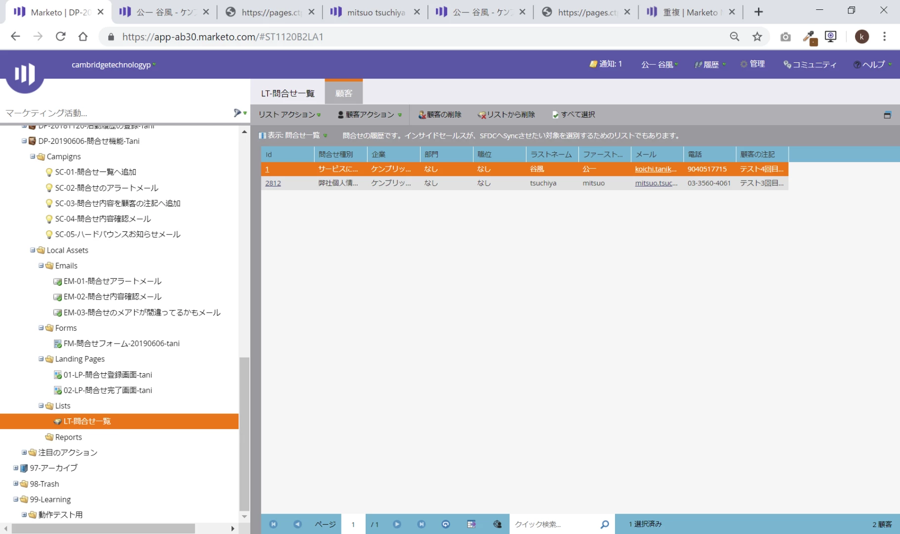 今、Marketoで問合せフォームを作ってます。