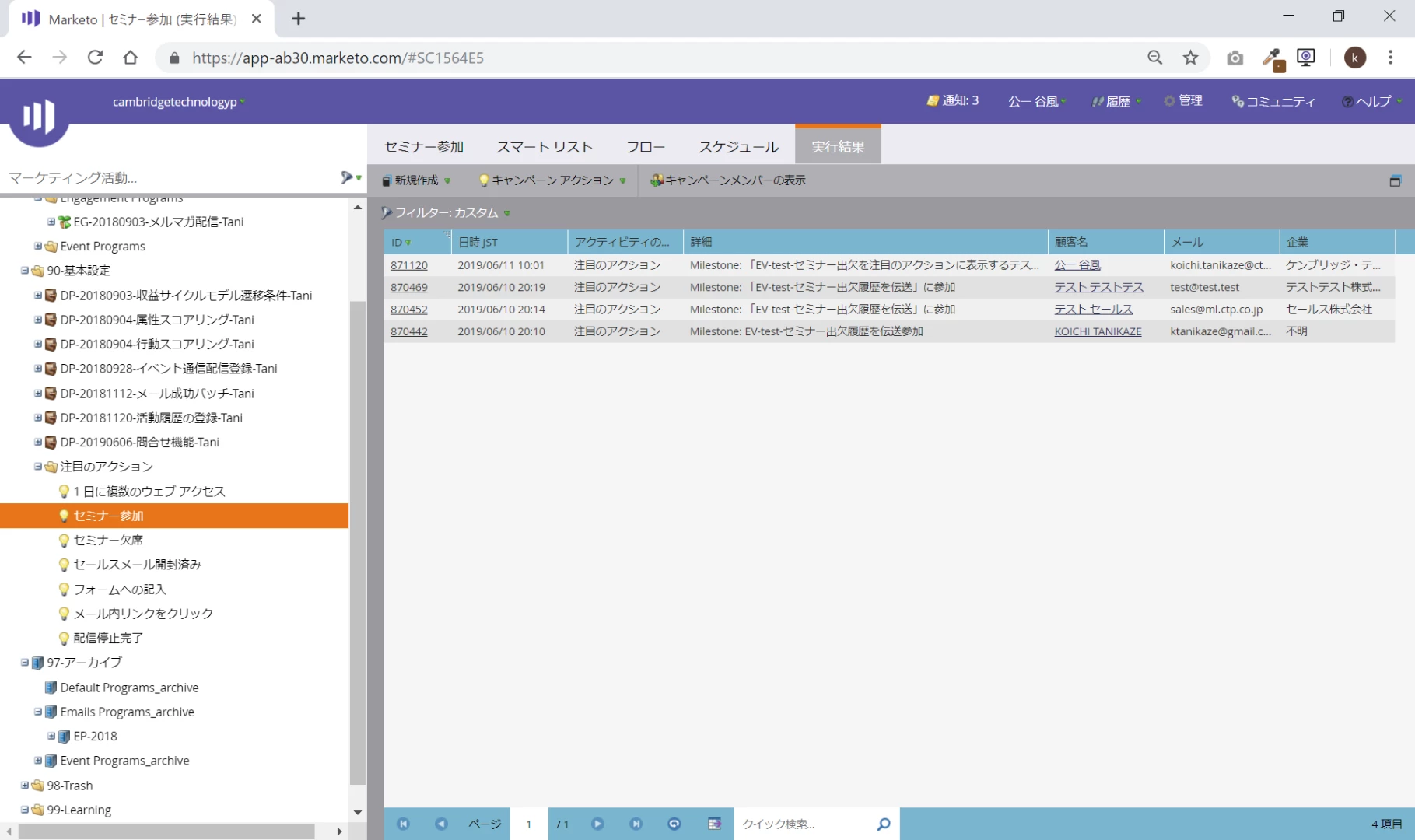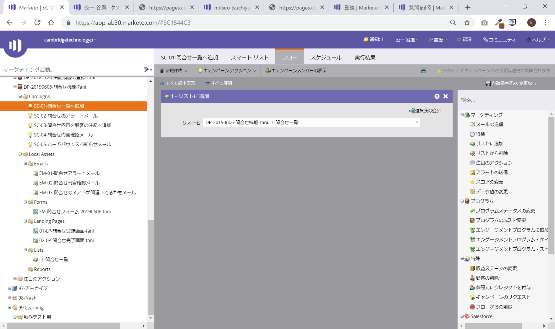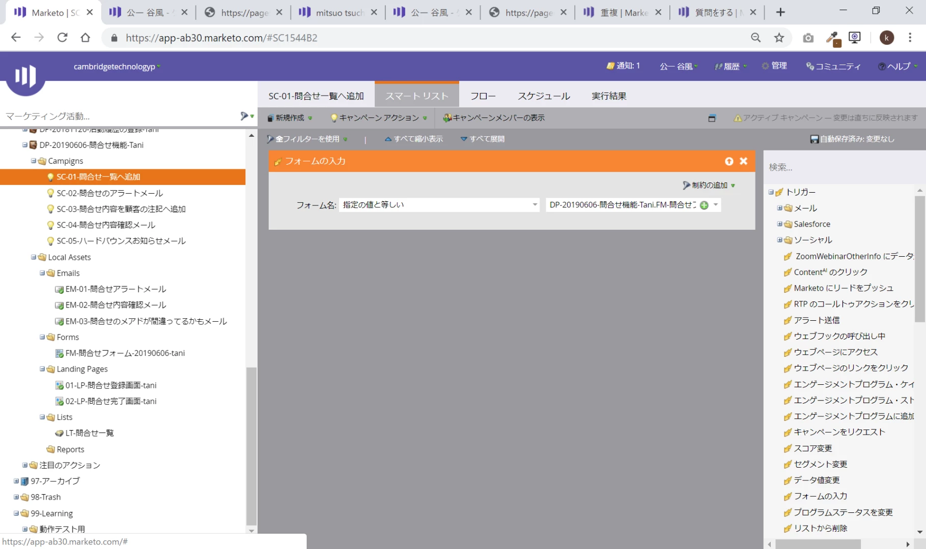 フォームに入力したら、リストに吐く、シンプルなスマートキャンペーン