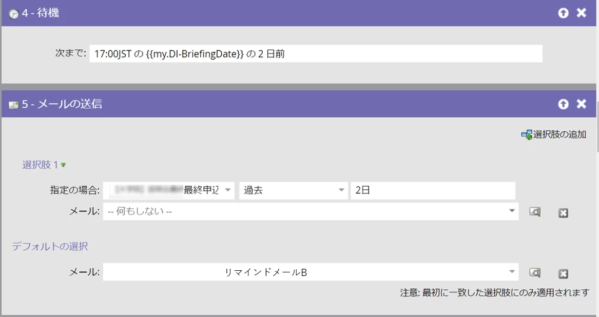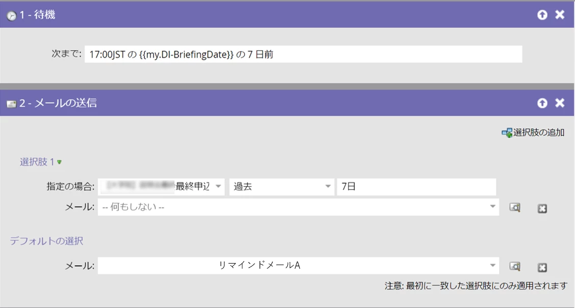 別のキャンペーンで2日前のリマインドメールから送付されるように設定したいと考えています。