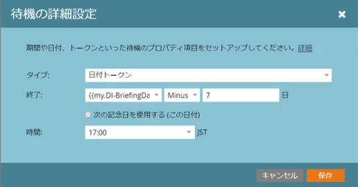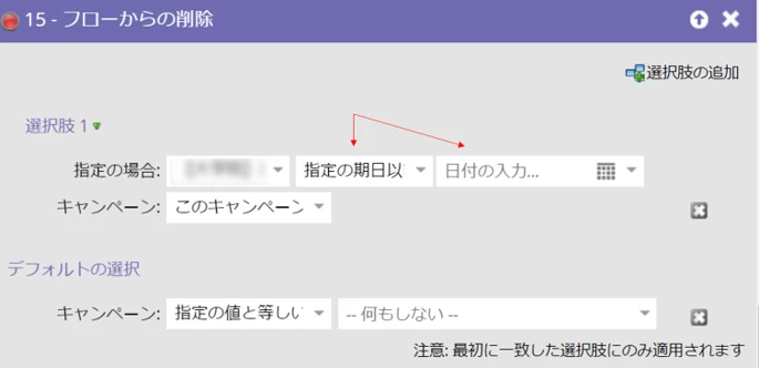 フローからの削除で指定した期間(日時)を設定したい
