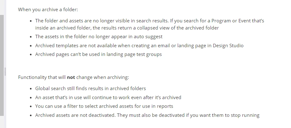 -An asset that's in use will continue to work even after it is in archive. Here is a reference link from Marketo product docs that might be helpful.Screenshot below