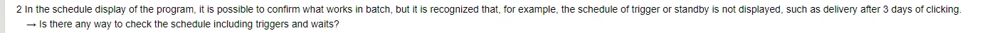-" for example, the schedule of trigger or standby is not displayed, "-to the best of my knowledge, this is not possible. A trigger smart campaign features one person at a time based on a triggered event. An example of an a trigger would be clicking on a link in an email. So the schedule tab can not display the "trigger schedule" because it is an activity that is yet to happen in the near future. once the activity is triggered (based on the trigger defined in the smart list) then the results are updated in the results tab