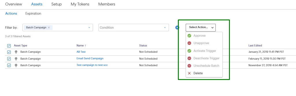 Addition if you want to manage activate \ deactivate triggered campaign in bulk, or perform any other mass action, you can do that via Marketo Sky as well for the below actions