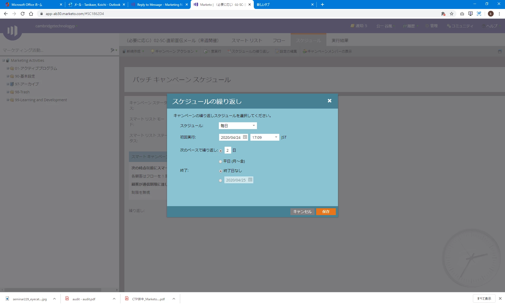 スケジュールの繰り返し:毎日定時刻