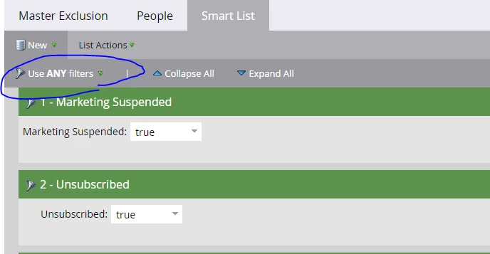 スマートリスト:リストのメンバー/指定のリストに存在する