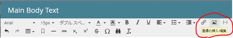 メールのテキスト挿入画面にある「画像の挿入/編集」をクリックして