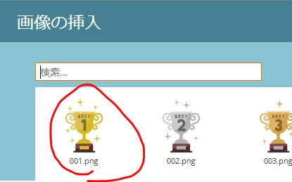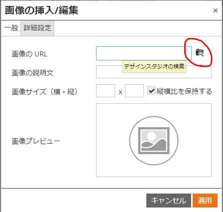 別のアップローダー等で画像のURLを取得している場合は、赤丸の左にあるボックスに直接URLをいれてください