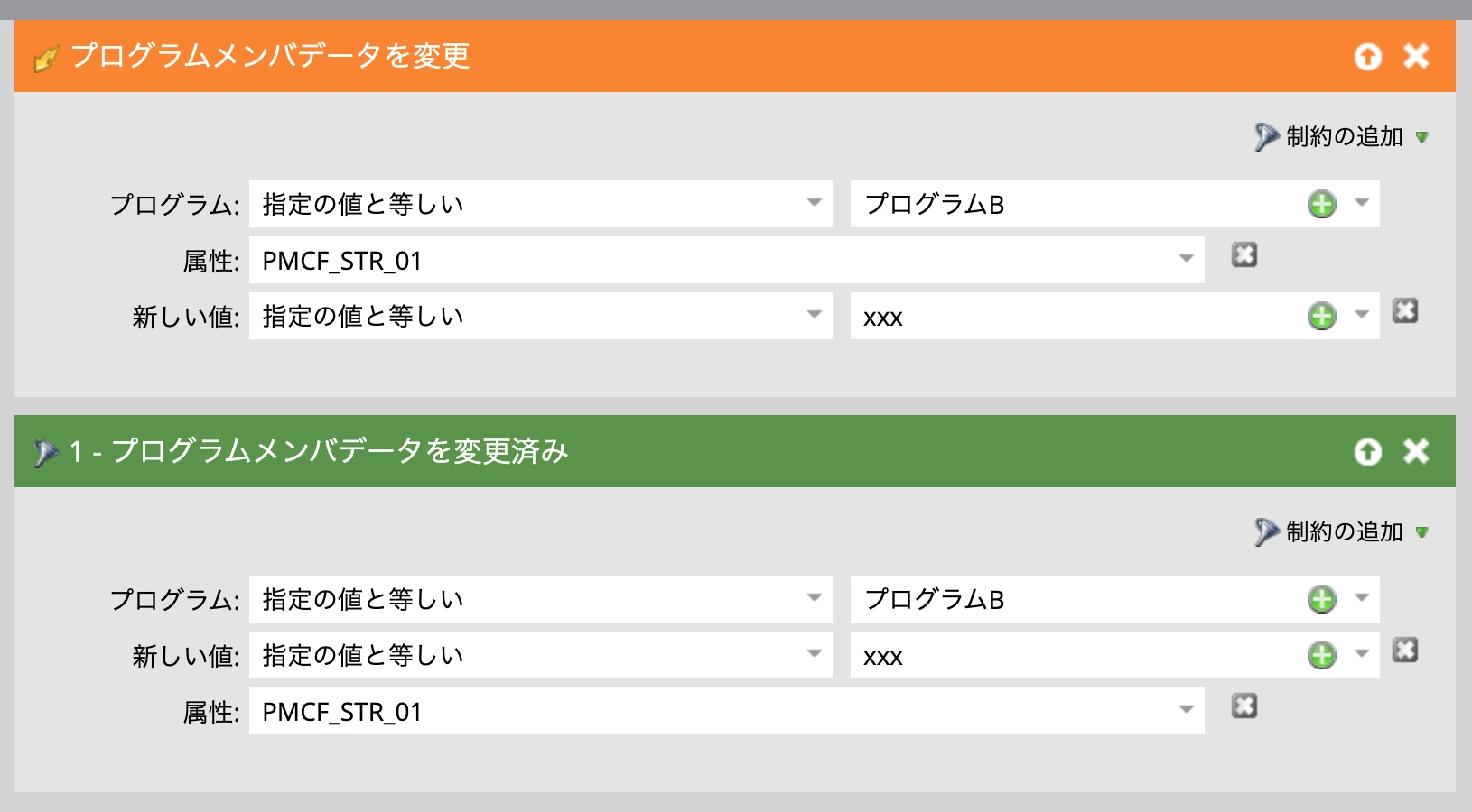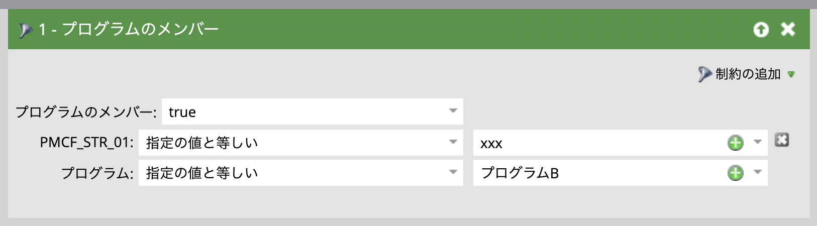 質問内容は、あるPMCFのデータを別のプログラムのスマートリストでフィルタとして使用できるかです。例えば、あるプログラムAにおいて、別のプログラムBの「PMCF_STR_01」の値が「xxx」だったリードという条件でフィルタリングすることはできるでしょうか?