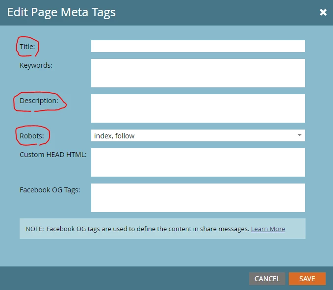 ↓titleとdescriptionは、ここから編集してください。Robots:は、検索されるためには"index, follow"または"index, nofollow"にする必要があります(メタの編集)