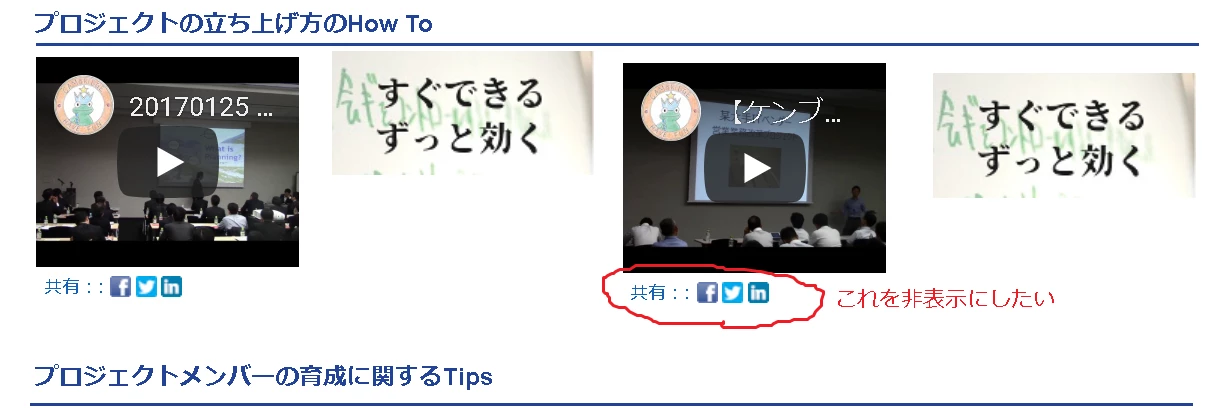 youtubeサムネイルの「共有:xxx」部分を非表示にしたい
