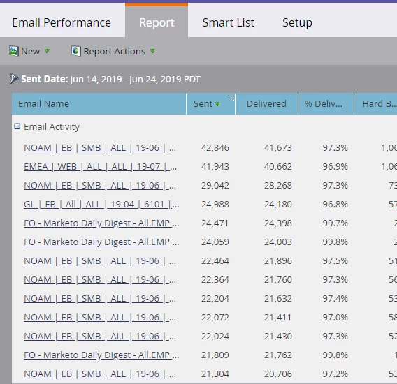 2. The Email Performance report can also be used to identify the possibly affected campaigns.