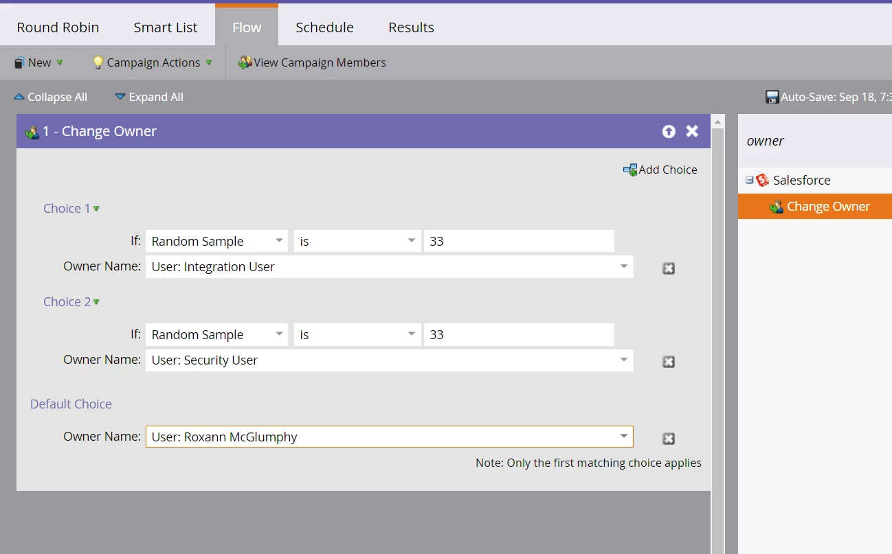 4. If you have 3 lead owners click on the Add Choice button 2 times. You always want the number of choices to equal the number of owners in the round robin minus one. This is because the last person goes in the Default slot.