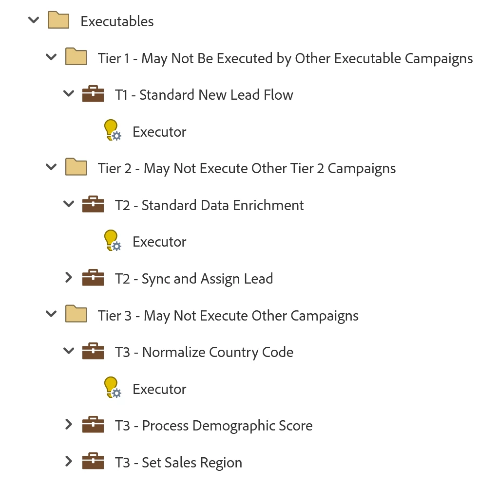 - Tier 3: These campaigns may not execute any other campaigns