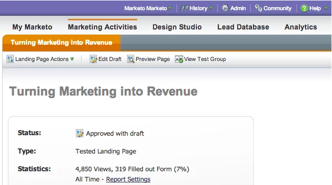 4. And you'll be taken to the landing page in Marketo.