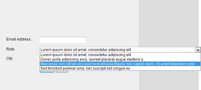 With long options in a select (dropdown) list, Internet Explorer will not expand the values as Firefox, Chrome and other browsers will do. This makes reading the values in the dropdowns impossible.