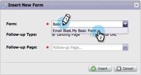 4. Find and select a Follow-up Page. Click Insert.