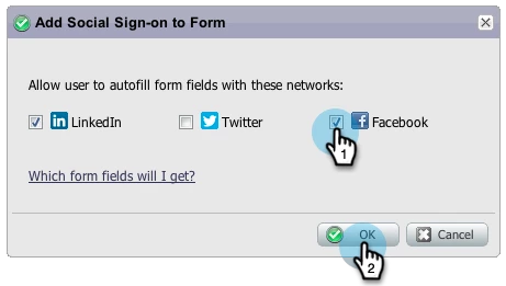 Enable people to fill in forms using their social network profile. Social form fill also captures social profile data about your leads.