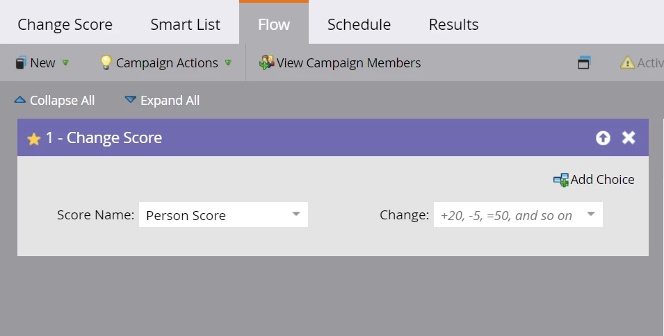 Campaigns that were not triggered during the impacted timeframe will not be automatically replayed. However, customers can create their own smart campaign to update the lead scores as shown below.