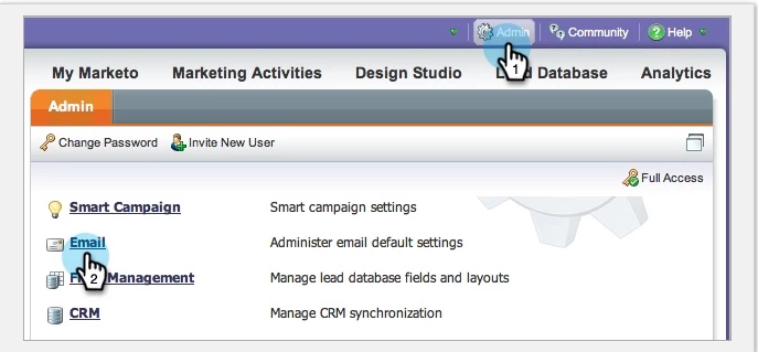 Go to Admin and click on Email.