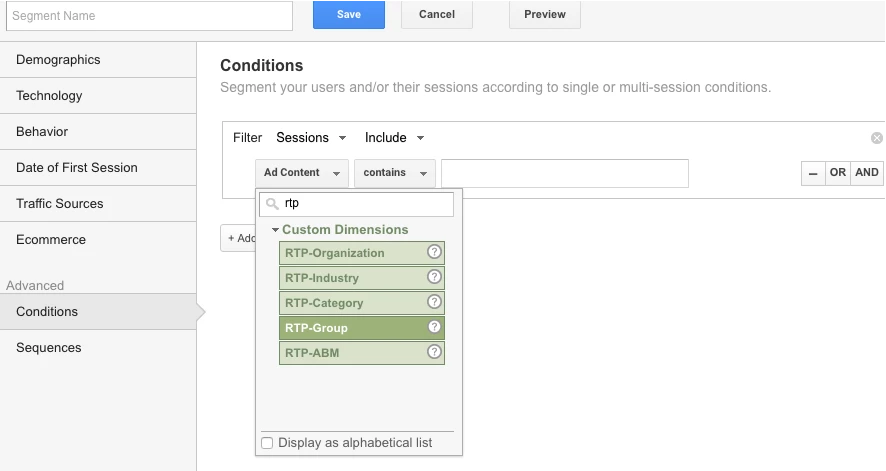 To validate that RTP is sending data to your GA account, first log in to your GA account, and make sure the segment data is being populated in GA.