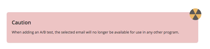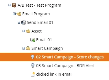 When the Program is approved, the email asset name will be changed to whatever kind of A/B test is used, and will be available for reference in other assets. For example: