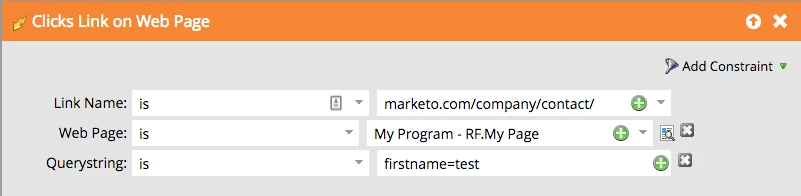 You want to measure who clicks a specific link that uses a query string from a landing page, but when you try to use this logic in a smart campaign or smart list, it tells you the URL can’t be found, even though you can see the URL embedded on the landing page.