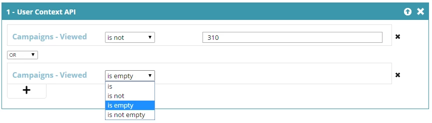 6. Select "is empty" for the second Campaigns Viewed filter option.