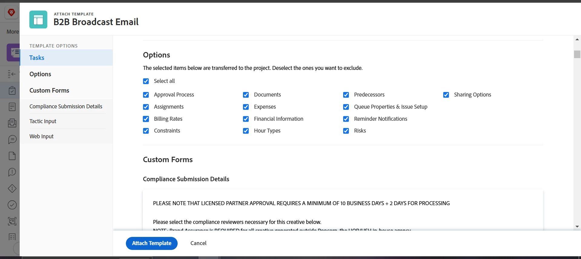 Ability to Edit Custom Forms When Attaching a Template to a Project
