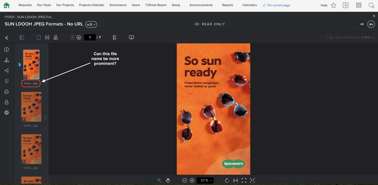Ability to view more prominent file name in proof HQ