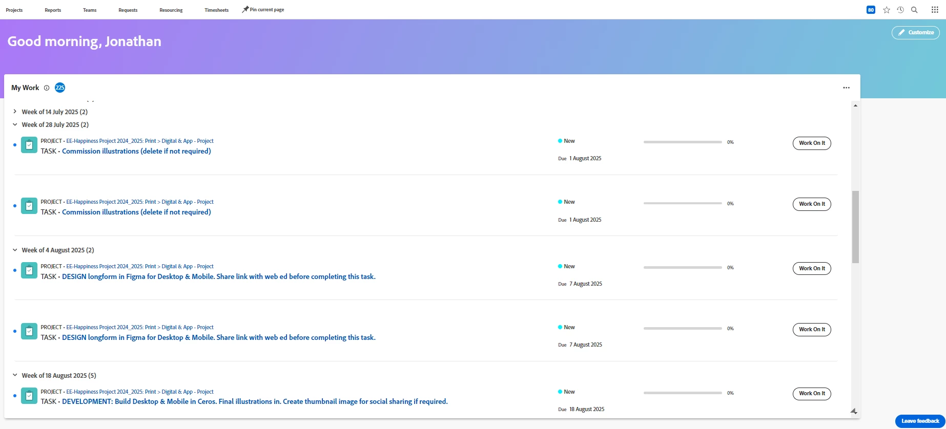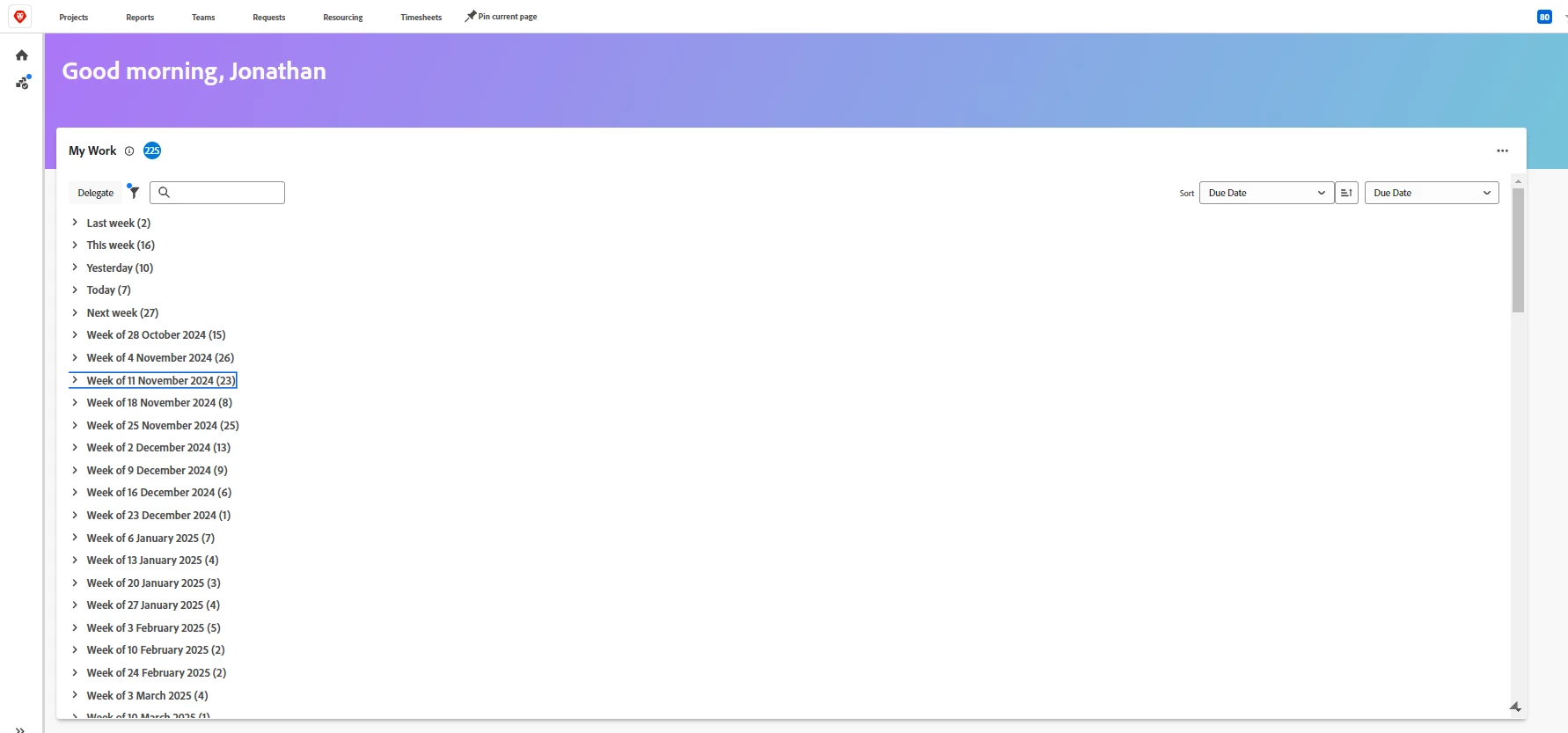 In the new home experience, when using the My Work widget to display projects in various different formats there is no option to 'collapse all' on the project name/heading.