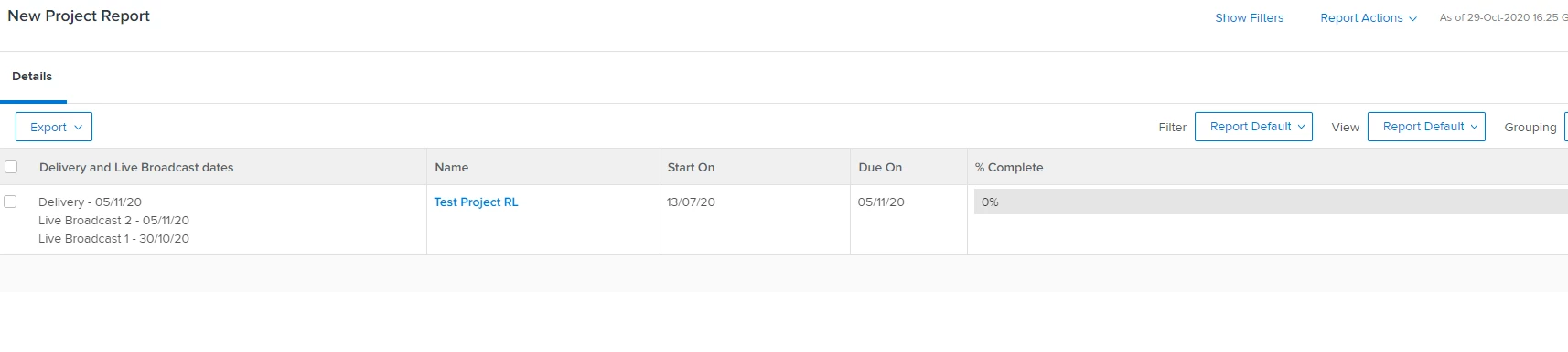 The way I would approach displaying the planned completion dates of parents that have 'Delivery' in the name, and child tasks that have 'Live Broadcast' in the name would be to create two separate columns and then link them into a single shared column.