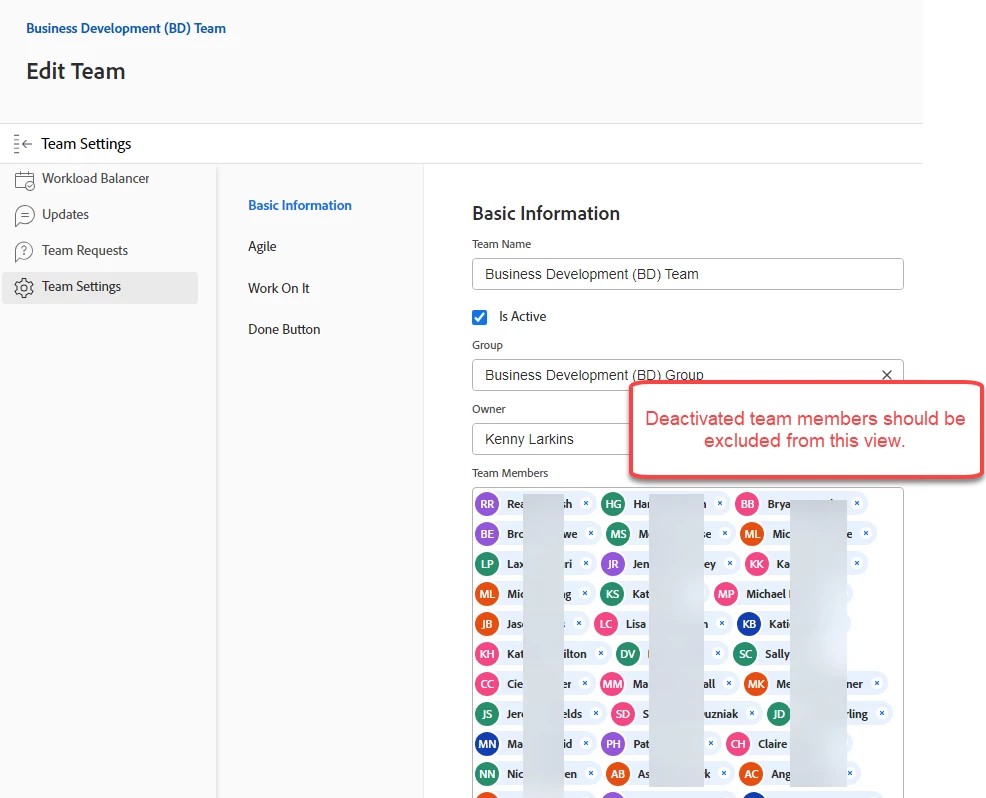 Add "Is Active" Filter Option to Exclude Deactivated Users from Teams Setting, etc., View