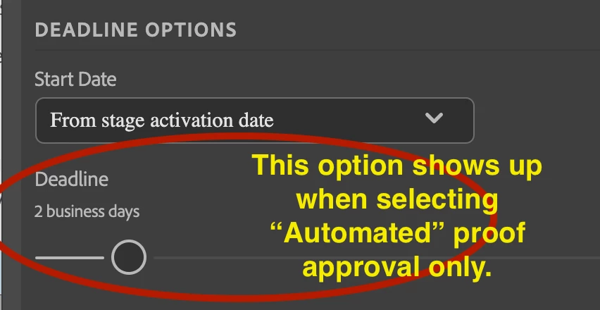 Requesting it to function like the "Automated" proof approval and add the deadline field. (Option with a calendar selection would be a level up.)