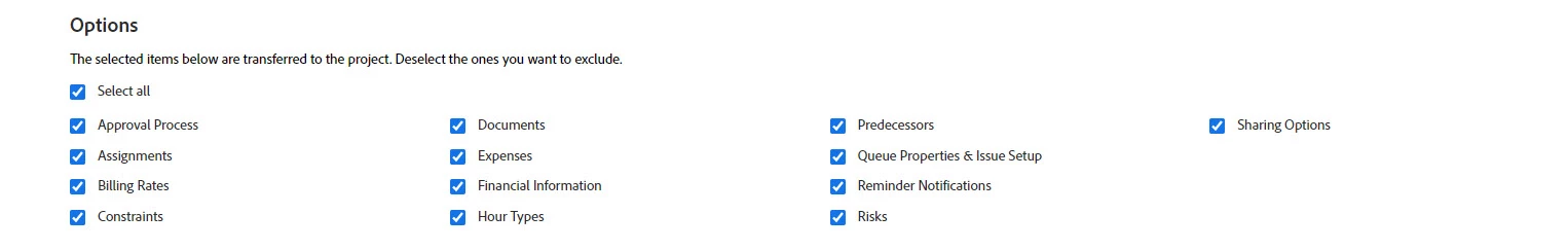 I currently have a process that involves adding multiple project templates to a project. I have done some testing and wanted to confirm that the only items that can be added/updated would be found in the Options section (attached) and not areas within the Overview and Finance Sections of the Project. Thanks!